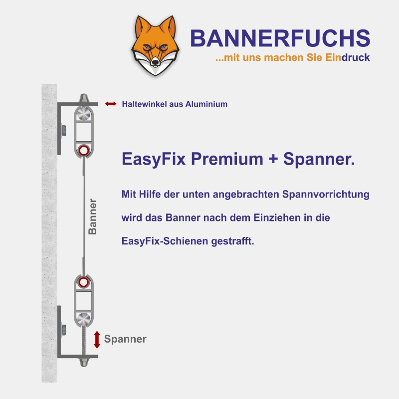 - Premiumaufhängung mit Spanner - unsere beste Wahl für ein stets makelloses Werbebild!
